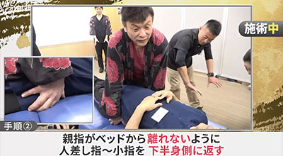 あるときは、腰椎骨折で車椅子生活の危険と隣合わせの患者を後遺症なく回復させ、またある時は脳梗塞による右半身の麻痺患者の感覚を戻すといった、まさに【神の領域】まで踏み込んだ奥義中の奥義。