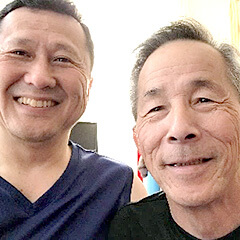パーキンソン病特有の小股でひょこひょこと前かがみで歩いていたのが、歩幅も取れて健常者に近い歩き方に変わっていきました。また施術前は薬の副作用のせいか表情がうつろだったのですが、はっきり表情が見られるようになっています。身体に芯ができた印象がありました。
