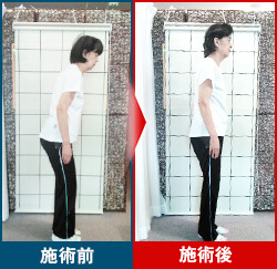 施術前はクの字になって倒れそうなのが施術後は安定した姿勢になりました。